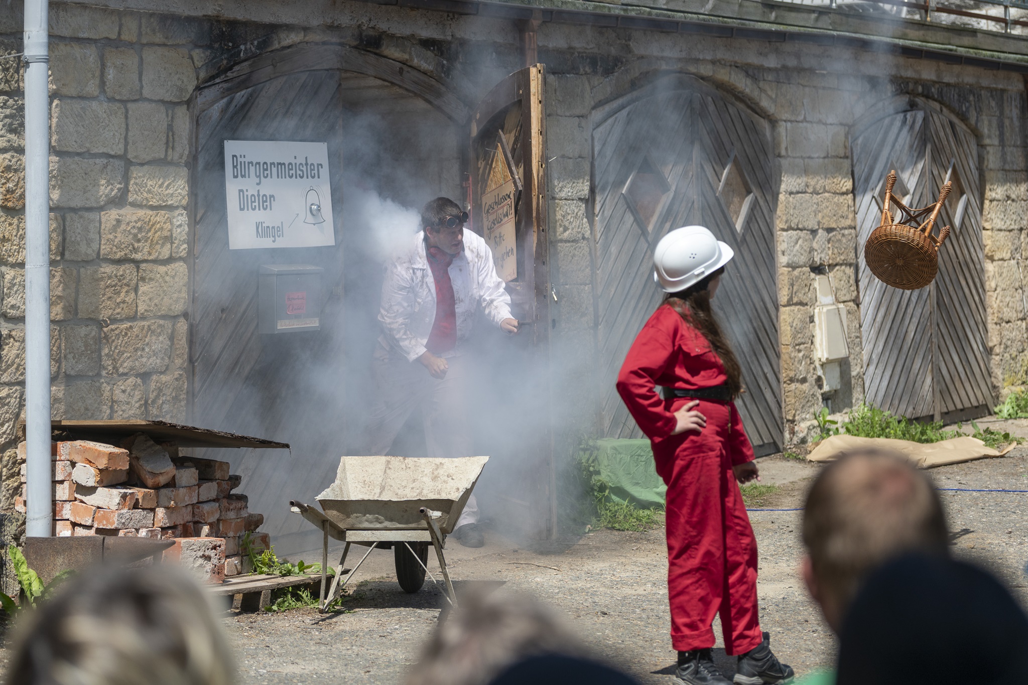 Das Dorf hat 585 jähriges Jubiläum und der Bürgermeister weiß noch nicht, ob die Feierlichkeiten überhaupt stattfinden können, denn durch die Anschaffung des neuen Faxgerät, ist die Gemeindekasse leer und das Geld reicht nicht einmal mehr für Luftschlangen aus.